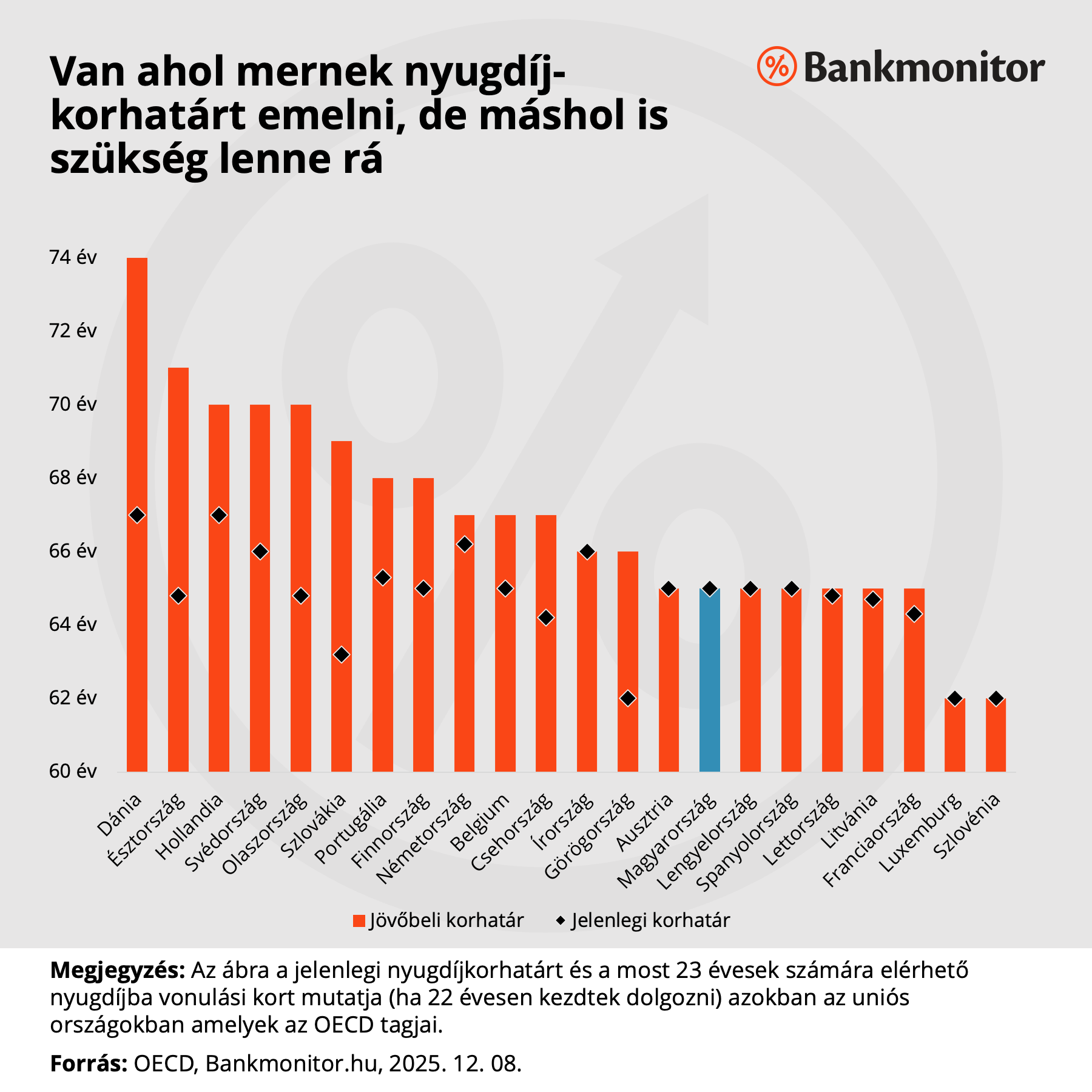 Persze lehet azt mondani, hogy a nyugatiak és az északiak egészségi állapota jobb, „fiatalabbak” ugyanabban az életkorban — és ebben tényleg van valami. Nálunk viszont ehhez hozzányúlni politikailag szinte öngyilkosság lenne. Aki megemelné a korhatárt, azt jó eséllyel a következő választáson kiszavaznák.