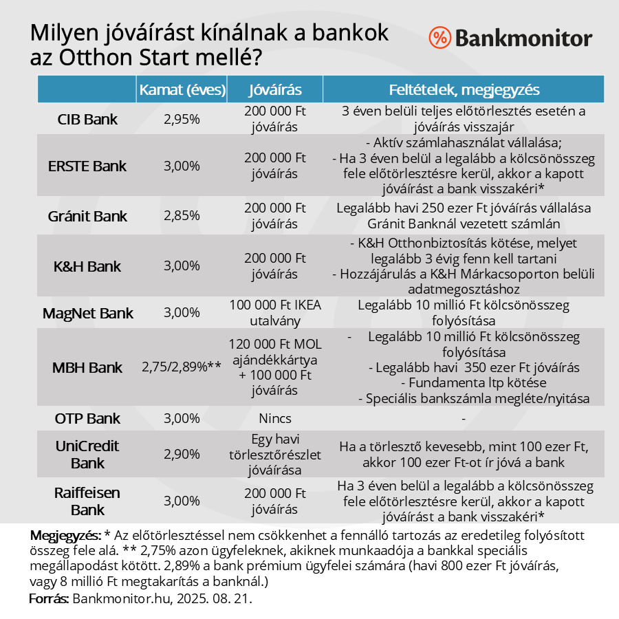 Milyen jóváírást kínálnak a bankok az Otthon Start hitel mellé?
