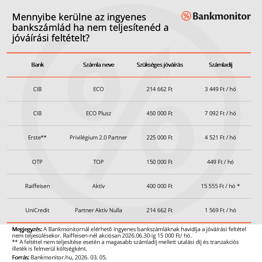 Használd a Bankmonitor kalkulátorát és nézd meg neked milyen ingyenes bankszámlák elérhetőek!