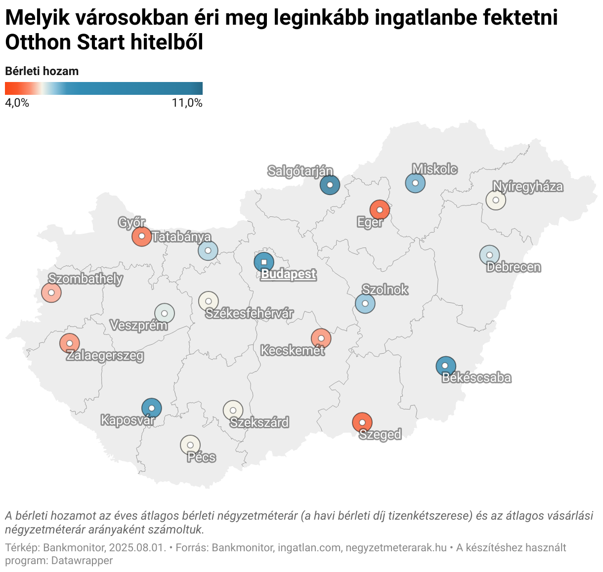 A befektetési célt a már napvilágot látott végleges jogszabály szövege is visszaigazolta, melyről kapcsolódó cikkünkben számoltunk be más fontos változások mellett. A Bankmonitor szakértői annak jártak most utána, hogy mely magyar nagyvárosokban érdemes a leginkább Otthon Start hitelből vásárolni lakást és azt kiadni.