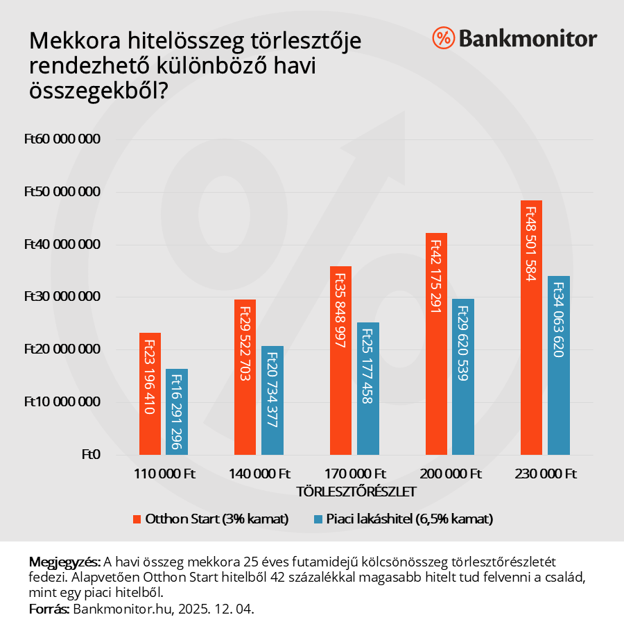 Ha ezt a helyzetet másképp is meg lehet közelíteni: ugyanazon törlesztőrészlet akár 42 százalékkal magasabb kölcsönösszeghez kapcsolódik az Otthon Start esetében.