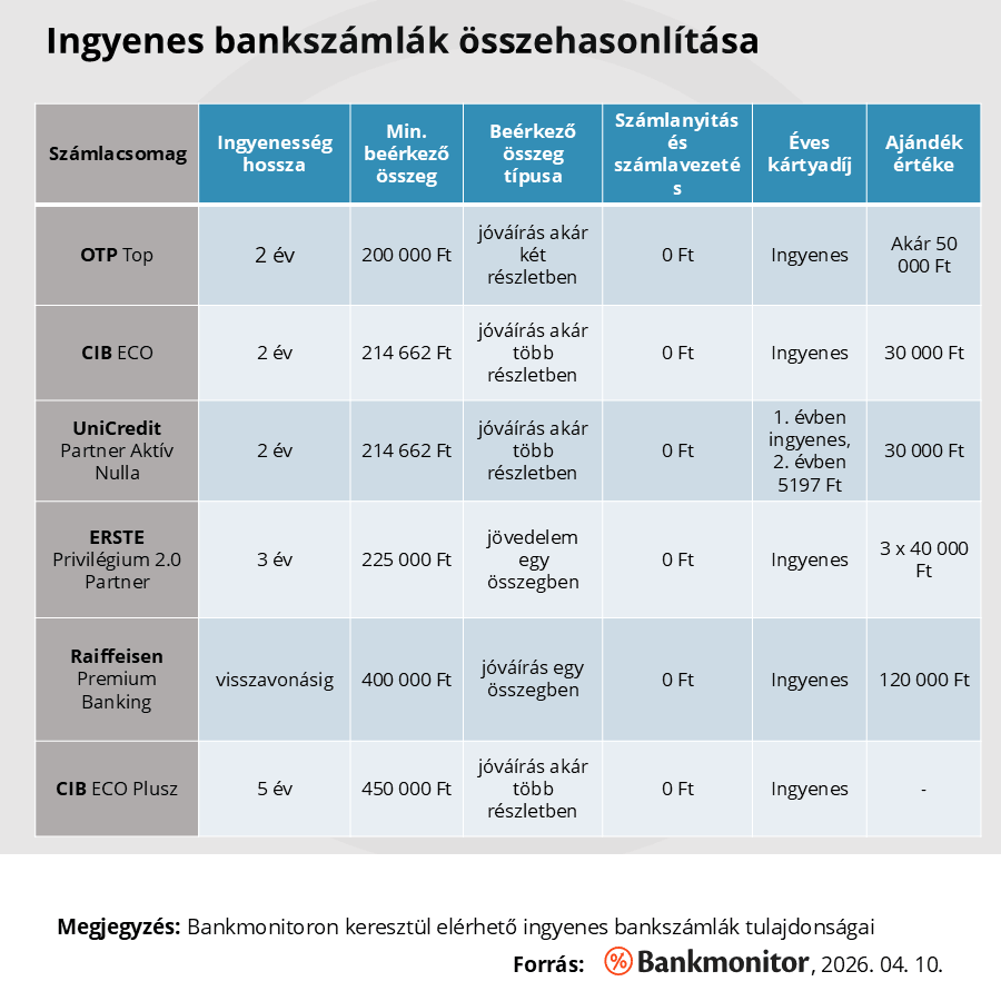 Fontos tudni, hogy ezek az ajánlatok jellemzően fix időre szólnak, a bankok legtöbbször 1, 2 vagy 5 évig garantálják az ingyenességet.